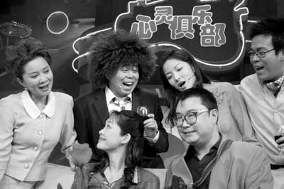 據(jù)欄目制片主任戴濤介紹,原先以綜藝節(jié)目為主的《新視聽》改版之后將成為中國第一個電視欄目周播的情景音樂劇,劇名為《心靈俱樂部》,而俱樂部成員由飽受失戀之苦、決心自救救人的熱心人明姐(蔡明飾)、潘經(jīng)理(潘長江飾)、孫大圣(孫浩飾)和管小妹(主持人管彤飾)四個成員組成。除了這四位常駐明星之外,還有諸如尹相杰、于文華等各路明星客串出場。主持人管彤對記者說:“除了在上大學(xué)時拍過一部電影之外,我?guī)缀鯊膩頉]有演過戲唱過歌,這次是第一次登臺演戲也是第一次開口唱歌。”