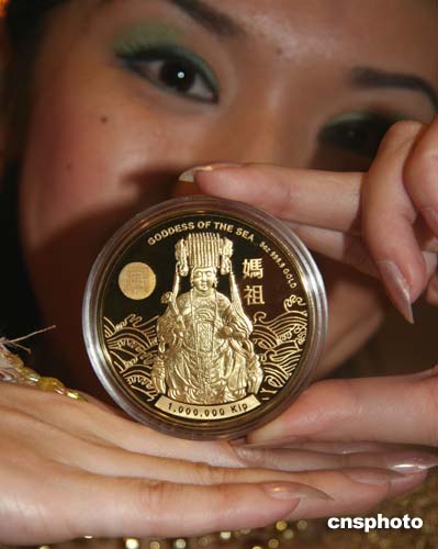 據(jù)介紹,媽祖紀(jì)念幣共七枚,各有不同的材質(zhì)與大小。其中最特別的是“風(fēng)調(diào)雨順”金幣,全球限量發(fā)行九十九套,售價(jià)十六萬元新臺(tái)幣。