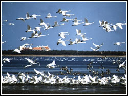 蓬萊閣:位于蓬萊縣城北的丹崖山巔。下臨大海,殿閣凌空,云煙繚繞,素稱“仙境”。