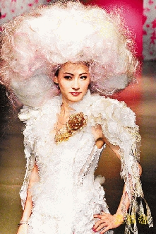 張柏芝以三個不同造型演出,其中以維多利亞宮廷服飾配襯大鬈曲假發(fā)最為搶鏡。