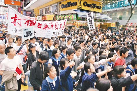 由香港多個民間團(tuán)體發(fā)起的“反日入常大游行”,大會表示有12000人參加,而警方則指有5000人。游行隊伍昨午先在維園集合,參加者無分男女老少,亦不乏外籍人士和來自內(nèi)地的人士,當(dāng)中不少人穿上印有反日字句的T恤,也有自備抗議橫額,更有高舉國旗的。而主辦單位亦派員向游行人士派發(fā)有關(guān)保護(hù)釣魚島事件的光碟、小冊子,以及印上“我們憤怒了,日本必須道歉賠償”的T恤。