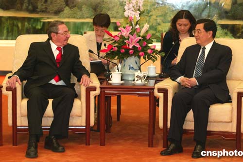 中共中央總書記、國(guó)家主席胡錦濤四月十八日在北京人民大會(huì)堂會(huì)見了古共中央第二書記、國(guó)務(wù)委員會(huì)第一副主席兼部長(zhǎng)會(huì)議第一副主席勞爾·卡斯特羅。作者:滿會(huì)喬