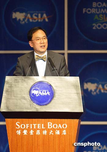 四月二十三日,博鰲亞洲論壇二○○五年年會在海南博鰲開幕,香港特別行政區(qū)署理行政長官曾蔭權(quán)發(fā)表主旨演講。作者:廖文靜