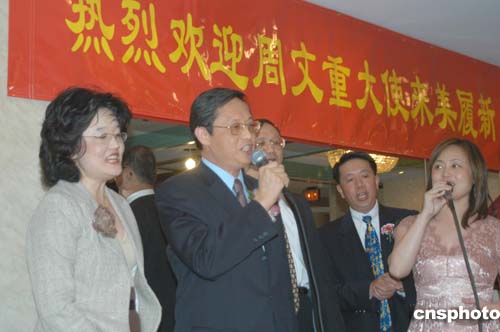 三百多名僑界人士于美東時間四月二十四日晚歡聚一堂,盛情歡迎中國駐美大使周文重履新,這也是他第三次到華盛頓中國大使館任職。周文重大使登臺與華盛頓黃河藝術(shù)團(tuán)的成員合唱《我和我親愛的祖國》,場面感人。作者:余東暉