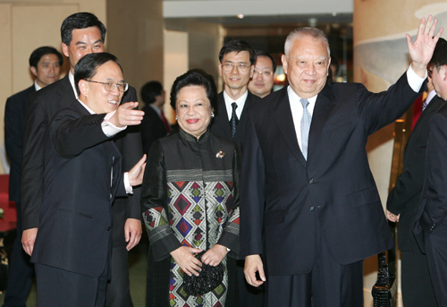 董建華伉儷甫到場(chǎng),即成為嘉賓和傳媒的焦點(diǎn)。他邊走下樓梯邊向大家揮手示好,更率先與署理行政長(zhǎng)官曾蔭權(quán)握手打招呼。由于嘉賓不少是其昔日工作的好拍檔,就是日常接觸的好朋友,董建華對(duì)他們甚有親切感,全程笑容可掬,不斷握手、揮手打招呼,輕松、無(wú)負(fù)擔(dān)的心情顯而易見(jiàn)。董氏伉儷和曾蔭權(quán)更應(yīng)傳媒要求,站定讓傳媒攝錄和拍照。