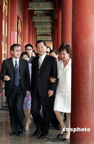 連戰(zhàn)訪團(tuán)隨即穿太和門,踏漢白玉塔基拾級(jí)登臨故宮內(nèi)最雄麗的太和殿,有記者詢問(wèn):“連戰(zhàn)主席,能不能談?wù)勀鷮?duì)故宮的看法?”連戰(zhàn)連嘆“很好、很好”,其夫人連方瑀也不住的頷首示意。