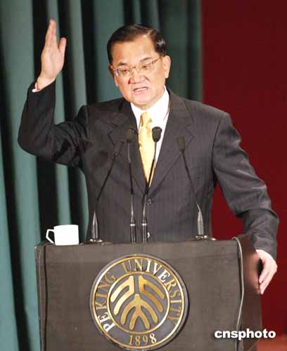 連戰(zhàn)在熱烈的掌聲中開始了他長(zhǎng)達(dá)一個(gè)多小時(shí)的演講和答問(wèn),期間贏得了二十五次熱烈的掌聲。連戰(zhàn)以他的母親是北大學(xué)友為開場(chǎng)白,一下拉近了他與北大師生的距離。連戰(zhàn)說(shuō)“臺(tái)灣的媒體說(shuō)我今天回‘母’校——母親的學(xué)校,這是一個(gè)非常正確的報(bào)道!边@一幽默的開場(chǎng)白贏得了全場(chǎng)的掌聲和笑聲。