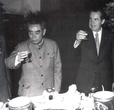 4月10日,美國乒乓球隊(duì)來到中國開始訪問。莊則棟和科恩兩人友好的“桃”“李”相贈(zèng),為中美長期隔絕對立的局面打開了缺口。莊則棟感慨地說:“我莊則棟這輩子只會(huì)打乒乓球,只能從臺(tái)的這邊打到那邊,還不停地下網(wǎng)出界。但能從地球這邊打到那邊的,只有毛澤東和尼克松!”