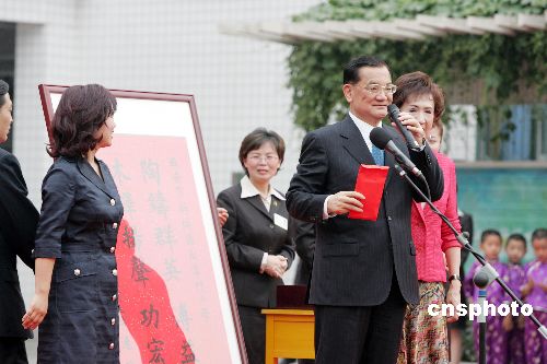 中新網(wǎng)4月30日電 中國國民黨主席連戰(zhàn)今日(30日)下午回到母校——后宰門小學,并向該校捐贈包括《臺灣通史》等三份禮物及10萬元捐款。