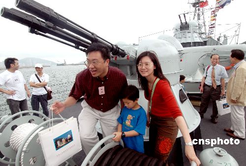 上午十時(shí),部分香港青少年團(tuán)體及學(xué)校師生約四千多人來(lái)到昂船洲海軍基地,饒有興趣地參觀艦艇,觀摩水兵文化生活,并進(jìn)行聯(lián)歡。