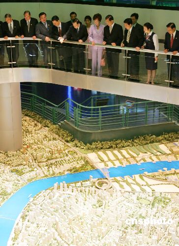 被稱為城市地標(biāo),上海城市規(guī)劃館展示的是“城市、人、環(huán)境、發(fā)展”主題。連主席一日晚間乘艇夜游黃浦江時(shí),對外灘樓群與其歷史淵源表現(xiàn)出不小的興致。二日下午,在規(guī)劃館,他更多了解了租界的演變、外灘淵源等都市形態(tài)的歷史痕跡;當(dāng)然,上海改革開放以來,乃至于二0二0年的城市規(guī)劃方向也一一呈現(xiàn)。