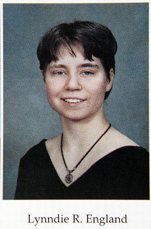 阿布格里卜監(jiān)獄虐囚丑聞曝光后,英格蘭出現(xiàn)在幾張最為令人震驚的照片上,成為這起丑聞的代表性人物。在一張照片上,口叼香煙的英格蘭笑著用手指向赤身裸體的男囚下體;在另一張照片上,英格蘭站在一群被迫疊羅漢的裸體男囚身后,翹起拇指稱快;還有一張照片顯示她用牽狗的皮帶牽著一名赤身躺在地上的男性囚犯。