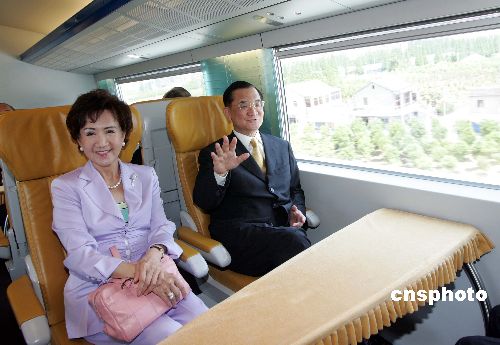 磁懸浮列車剛一發(fā)動,訪問團的成員們與上百名海內(nèi)外記者就體驗到飛快加速的感覺。連戰(zhàn)與夫人連方瑀端坐在貴賓車廂的最前排,兩人始終面帶微笑,還不時親密交談著感受,連戰(zhàn)時而也倚在靠窗的坐位上,饒有興味的望著窗外飛速而過的風(fēng)景。