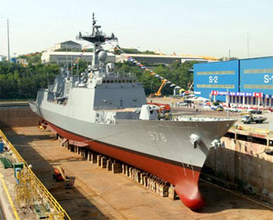 5月4日上午,韓國現(xiàn)代重工在蔚山總部特種船只事業(yè)本部舉行了驅(qū)逐艦命名和下水儀式,韓國國務總理李海瓚、以聯(lián)合參謀本部議長李相熙為首的軍方人士、蔚山市長、現(xiàn)代重工社長柳觀洪等300余人出席了儀式。