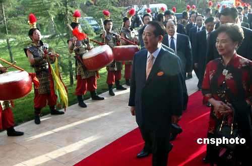 五月五日,由親民黨主席宋楚瑜率領(lǐng)的親民黨大陸訪問團抵達西安。訪問團一行首站前往大唐芙蓉園體味唐風唐韻。作者:廖文靜