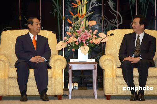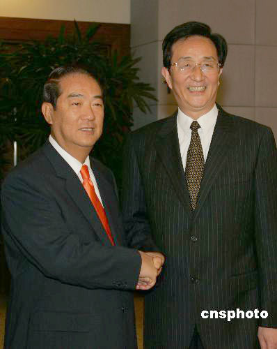 五月七日晚,中共中央政治局委員、上海市委書(shū)記陳良宇在上?萍拣^會(huì)見(jiàn)了親民黨主席宋楚瑜率領(lǐng)的親民黨大陸訪(fǎng)問(wèn)團(tuán)一行。作者:潘索菲