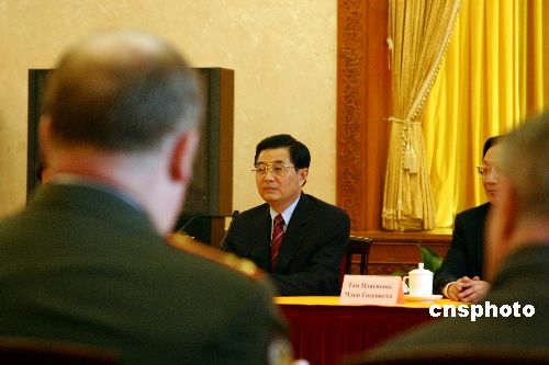正在此間出席俄羅斯紀(jì)念衛(wèi)國(guó)戰(zhàn)爭(zhēng)勝利六十周年慶典的中國(guó)國(guó)家主席胡錦濤,今天在中國(guó)駐俄使館親切會(huì)見了當(dāng)年曾在中國(guó)東北抗日戰(zhàn)場(chǎng)上和衛(wèi)國(guó)戰(zhàn)爭(zhēng)中浴血奮戰(zhàn)的俄羅斯老戰(zhàn)士代表。
