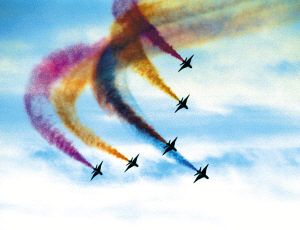 赤橙黃綠青藍(lán)紫,誰持彩練當(dāng)空舞?新型表演機為在藍(lán)天織就更美的彩練,還專門加裝了拉煙控制盒。此前,拉煙系統(tǒng)都是經(jīng)過改裝而成的。說起拉煙技術(shù),在20世紀(jì)80年代初期,僅有美國和蘇聯(lián)少數(shù)國家具備,但它們實行技術(shù)封鎖。為了打破這種局面,表演隊經(jīng)過上千次試驗,先后攻克白煙、彩煙難題,終于達(dá)到世界先進(jìn)水平。