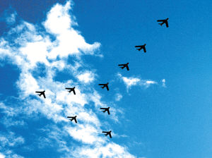 面對筆者的提問,李隊長說,由于飛機在一些方面的改進(jìn),要使新機達(dá)到當(dāng)前6機編隊水平,飛行員需要進(jìn)行一段時間的恢復(fù)性訓(xùn)練。至于表演科目,他表示,因為使用的是超音速飛機,在表演動作上就要受一些限制。比如速度快轉(zhuǎn)彎半徑就大,在天氣好的情況下,觀眾能看到精彩表演,天氣不好視覺效果就差。另外還有一些動作雖屬高難,但觀賞性不強。對這些他們將在原有基礎(chǔ)上加以改進(jìn)、有所創(chuàng)新。具體有哪些飛行動作“新鮮出爐”,李隊長避而不答。他只表示,觀眾以后將會看到更精彩的表演。