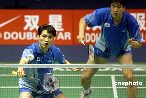 金東文今天依舊和老搭檔河泰權配合男雙,二人狀態(tài)頗佳,很快以兩個十五比二擊敗泰國選手蘇凱特·普拉帕卡莫爾和帕塔波爾,衛(wèi)冕冠軍韓國隊從而以三比一迎來蘇杯的首場勝利。