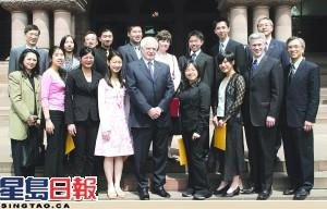 圖為Vision Youth獎(jiǎng)項(xiàng)中13名華裔青年同省督等合影。(加拿大《星島日?qǐng)?bào)》記者:李川濟(jì))