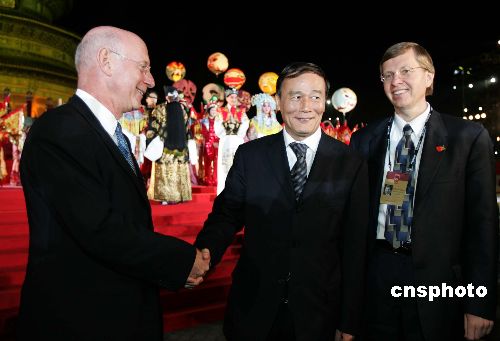 “在這美好的夜晚……我代表全體北京市民、向各位賓朋表示熱烈的歡迎……北京是一座歷史悠久、文化底蘊深厚的古都,同時也是一座朝氣蓬勃、向現代化快速邁進的城市……今天,一千五百萬勤勞和智慧的北京市民正在為實現新北京、新奧運的戰(zhàn)略構想而努力工作……北京將以更加積極的姿態(tài)走向世界……熱烈歡迎中外跨國公司、金融機構、高科技企業(yè)現代服務業(yè)企業(yè)來京投資,共享中國機會、北京機會”,王岐山依照與會諸人座位上早已放置的一份精美講稿原字誦讀。
