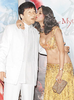 《神話》在影展中播出了大約一分多鐘的片段,當(dāng)中除了千軍萬馬的大場面,金喜善寬衣解帶為成龍療傷的場面也很有看頭。成龍在記者會上表示雖然戲中和金喜善有感情戲,但堅拒激吻,唯一的激情戲中,金喜善卻笑不停,浪費了很多時間,也讓成龍忍不住問:“到底我這個樣子有什么好笑!”