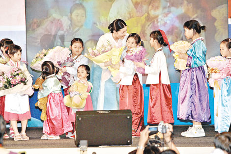 萬眾期待的李英愛,身穿韓服于三時(shí)十五分到場,現(xiàn)場觀眾紛紛站起來,搖著手上的紙扇歡迎她,又以韓文高呼“我愛你”。她走紅地氈進(jìn)場時(shí),除了一直保持笑容,還向觀眾揮手及握手,令觀眾情緒十分高漲。她在后臺(tái)逗留了十分鐘,到三時(shí)廿五分才上臺(tái),即時(shí)以廣東話向現(xiàn)場巿民打招呼:“大家好,你好嗎?我系李英愛!比珗隽r(shí)歡呼,她繼而用韓文道:“多謝大家在這里,希望大家學(xué)大長今的精神,祝大家健康快樂!彼终f好開心跟大家近距離親密接觸,希望大家繼續(xù)愛她支持她,又以廣東話說:“多謝!多謝!”