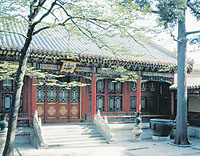 倦勤齋位于寧壽宮花園的最北端,面積幾百平方米。清乾隆三十七年(1772年)仿建福宮花園中的敬勝齋而建。“倦勤齋”取“耄期倦于勤”之意,顯示這里是太上皇的憩息之所。它室內(nèi)頂棚及西墻、北墻上滿繪的圖畫被稱為“通景畫”,是由歐洲傳教士畫家郎士寧借鑒了歐洲教堂中的天頂畫和全景畫的形式而移植于清代宮廷內(nèi)的。(楊玉峰)