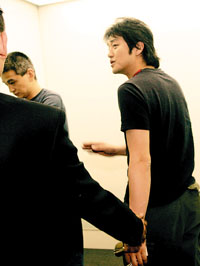 發(fā)布會原定晚上8點半開始,他幾乎踩著點兒到場。他的出現(xiàn)引得眾多攝影記者爭相拍照。一通閃光燈后,不等會議開始他就坐不住了,起身告退。記者尾隨他到電梯門口,看到鏡頭,李亞鵬的眼光起初有些閃躲,隨即無奈地正視著記者,神情十分復雜。