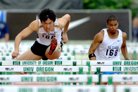 中新網(wǎng)6月5日電 東方網(wǎng)消息,今日凌晨,美國尤金當(dāng)?shù)貢r間6月4日下午13時揭幕的第31屆普雷方丹田徑精英賽可謂群英畢至,包括中國名將劉翔在內(nèi)的8名雅典奧運金牌得主的參賽將使得俄勒岡大學(xué)的海沃德田徑場星光燦爛,5個奧運項目金銀牌得主的再度對決掀起本賽季田壇的第一個高潮。在男子110米欄比賽中,令人期待的跨欄王子劉翔與老牌欄王約翰遜在本賽季的第一場對決以劉翔的勝利奪冠畫上句號。劉翔在比賽中跑出13.06秒的成績,不但刷新的本賽季的最好成績,也改寫了普雷方丹田徑精英賽的賽會紀(jì)錄。