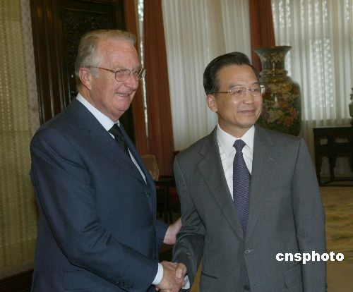 六月七日,中國國務院總理溫家寶在北京中南海會見來訪的比利時國王阿爾貝二世。作者:史利