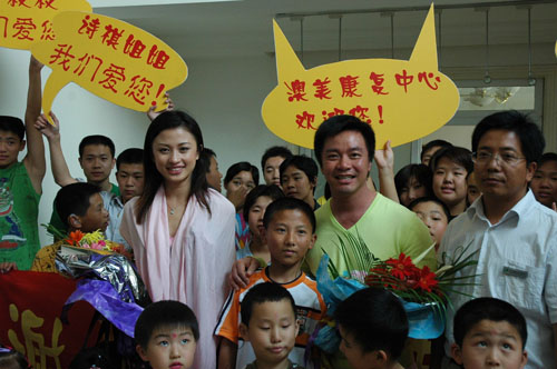 中新網(wǎng)6月8日電 6月7日,香港著名導(dǎo)演唐季禮與2004屆鳳凰衛(wèi)視“中華小姐環(huán)球大賽”冠軍李詩琪一天內(nèi)奔走于津、京兩地的中國醫(yī)學(xué)科學(xué)院血液病醫(yī)院和北京澳美聽力語言研究中心之間,探訪那里的白血病患兒和耳聾的小朋友,呼吁整個社會對這些需要幫助的孩子的關(guān)愛。