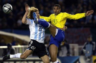 此后,場上火藥味漸濃,兩隊隊員頻頻出現(xiàn)肢體沖突,裁判不得不先后出示多張黃牌來讓雙方冷靜。巴西隊的進攻依然沒有起色,阿根廷隊的反擊確實非常具有威脅性。第39分鐘,阿根廷隊兩名前鋒克雷斯波和薩維奧拉配合,后者將球傳中,克雷斯波在羅克-儒尼奧爾盯防下頭球一蹭,皮球應聲入網。比分被擴大為3比0。