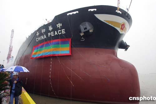 “中華和平”號是臺灣船東直接在祖國大陸訂造的第一艘船。十年前,因海峽兩岸無法實現(xiàn)直接的經(jīng)貿(mào)往來,臺灣遠(yuǎn)東倉儲公司曾通過日本三菱商社,間接地向江南造船廠訂造了一艘七萬噸級巴拿馬型散貨船“遠(yuǎn)涵”號。二00三年六月,在上海外高橋造船公司成功交付第一艘出口船即香港泰昌祥航運公司訂造的十七點五萬噸好望角型散貨船“祥瑞”號之際,“中國航運股份有限公司”于四日內(nèi)連續(xù)向該船廠訂造了兩艘同型船,今天命名交付的“中華和平”號便是其首制船,揭開了海峽兩岸航運業(yè)和造船業(yè)在新世紀(jì)共同發(fā)展、繁榮的嶄新一頁。