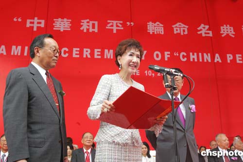 一個(gè)多月前,連方瑀女士陪同丈夫連戰(zhàn)到祖國(guó)大陸訪問(wèn),所到之處受到熱烈歡迎,大陸的發(fā)展也給她留下深刻的印象。這次,她將交付的新船命名為“中華和平”號(hào),并應(yīng)邀偕多位親友來(lái)滬參加交船儀式。