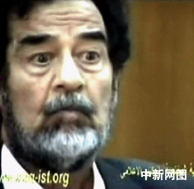 6月13日公布的伊拉克前總統(tǒng)薩達(dá)姆在一不明地點(diǎn)接受質(zhì)詢的電視照片。伊拉克特別法庭表示,一名法官已向薩達(dá)姆提出質(zhì)詢,調(diào)查一什葉派穆斯林聚居的村莊里數(shù)十名男子被殺害事件。1982年,薩達(dá)姆曾在該村逃過一次暗殺。