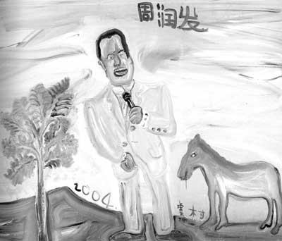 “周潤(rùn)發(fā)”看上去竟然像個(gè)日本人;“姚明”的腦袋和身子幾乎一樣長(zhǎng);“容祖兒”一只眼睛大,一只眼睛小,張著一張血紅色、與面部不相稱的大嘴;“劉德華”的腦袋是歪的。而所有人物的比例完全失調(diào),表現(xiàn)的筆觸完全放在了臉部,身子、腿完全像是嫁接的。