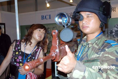 | 六月十五日,中國(guó)深圳首屆反恐裝備信息系統(tǒng)安全及治安防控技術(shù)產(chǎn)品展覽會(huì)開(kāi)幕。展覽中外反恐應(yīng)急裝備、城市應(yīng)急系統(tǒng)技術(shù)及產(chǎn)品、刑偵技術(shù)及產(chǎn)品、消防、治安防控技術(shù)等。圖為參展商現(xiàn)場(chǎng)演示超視界、數(shù)字化戰(zhàn)場(chǎng)晝夜監(jiān)控系統(tǒng)。作者:聞子