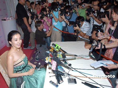由于現(xiàn)場人多擠迫,記者會要延遲半小時才開始。樸恩惠一身low-cut長裙,勁騷有料身材,并以廣東話向fans打招呼。樸恩惠談及此行受寵若驚,沒估計過有這么多人喜歡她。至于有指她貌似王祖賢,她說:“好榮幸,她是一級美女,很難相提并論!