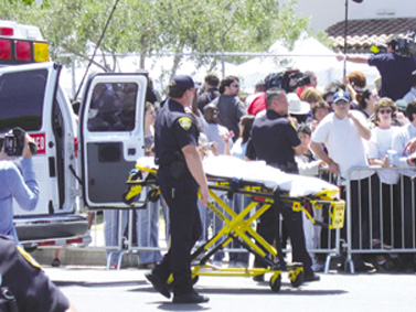 為了防止意外,圣塔巴巴拉縣警局派出約50名警察到現(xiàn)場(chǎng),他們負(fù)責(zé)維持法庭停車(chē)場(chǎng)內(nèi)的公共安全。法庭外的馬路上,約有40名圣塔瑪瑞亞市警局的警察維持秩序。為防止最壞的事情發(fā)生,警方調(diào)用了裝甲防暴車(chē)。