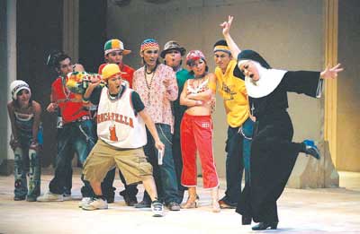 很多人都對黑人女星烏比·戈德堡主演的喜劇電影《修女也瘋狂》記憶猶新,《跑路救天使》即改編自此片。該劇在2004年由臺灣果陀劇場推出,當(dāng)時曾創(chuàng)下連演31場場場爆滿的記錄,很多場次中謝幕時間竟長達(dá)30分鐘。而果陀劇場也是臺灣戲劇界的重要組成部分,它一直致力于“中文歌舞劇”的演出,獲得過多項(xiàng)表演大獎,被業(yè)內(nèi)人士稱為“東方百老匯”。有意思的是該劇中還使用了很多觀眾耳熟能詳?shù)牧餍懈枨,像《讀你》、王菲的《我愿意》、張惠妹的《姐妹》、劉文正的《誰在眨眼睛》等等,而且風(fēng)格與我們熟悉的曲調(diào)有了很大改變,像《讀你》就被唱出了“圣歌”的味道。