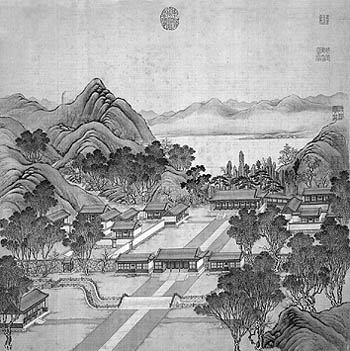 “圓明園四十景圖詠”是乾隆元年1736年,乾隆皇帝令宮廷畫師沈源、唐岱依據(jù)圓明園實(shí)景繪制,由沈源畫房舍,唐岱畫土山樹(shù)石。圓明園四十景,是指園內(nèi)獨(dú)成格局的四十處園林景觀,一個(gè)景就是一座“園中園”。當(dāng)時(shí)圓明、長(zhǎng)春、綺春,三園共計(jì)約有百余處景群,但昔日僅繪制此四十景,更突現(xiàn)出此四十景的顯要與華蓋群芳。四十景圖為絹本彩繪,每幅圖的絹心為64×65厘米,連裝池綾邊為83×75厘米,每幅圖配有時(shí)任工部尚書大書法家汪由敦代書的乾隆皇帝“四十景詩(shī)”,連同“四十景圖”共計(jì)四十對(duì)幅,每對(duì)幅為左詩(shī)右圖。