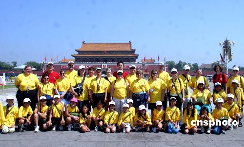 六月二十日,第二期“美國人領(lǐng)養(yǎng)中國兒童夏令營”的三十九人,其中成人二十名,兒童十九名來到北京天安門廣場參觀并合營留念。本次夏令營為期十三天,活動期間營員將訪問北京、西安、上海等城市。作者:張勤
