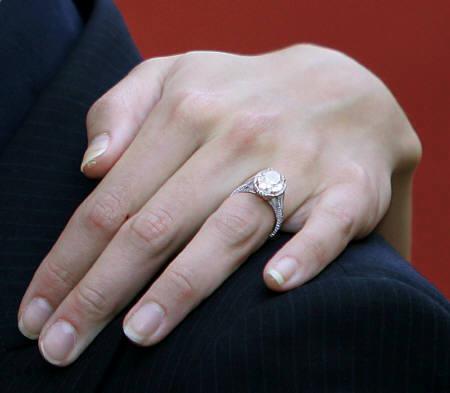 美國女星凱蒂荷姆斯(Katie Holmes)6月19日參加倫敦《世界大戰(zhàn)》(強(qiáng)戰(zhàn)世界,War of the Worlds)的英國首映會(huì)時(shí),被拍攝到手上所戴的定情戒指。湯姆克魯斯(Tom Cruise)6月17日宣布已經(jīng)在浪漫的巴黎艾菲爾鐵塔向女友凱蒂荷姆斯求婚,這只鉆戒代表了阿湯哥的愛意。(來源:路透社 作者:Mike Finn-Kelcey)