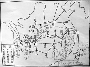 該地圖是那志良在協(xié)助臺(tái)灣“教育部部長”杭立武編寫《中華文物三十年》時(shí)畫出的,王慶臺(tái)在整理資料時(shí)參考了該圖并進(jìn)行了一些補(bǔ)充和完善!洞\(yùn)合約書》手抄副本