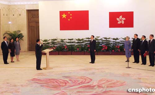 圖:香港特區(qū)行政長官曾蔭權宣誓就職