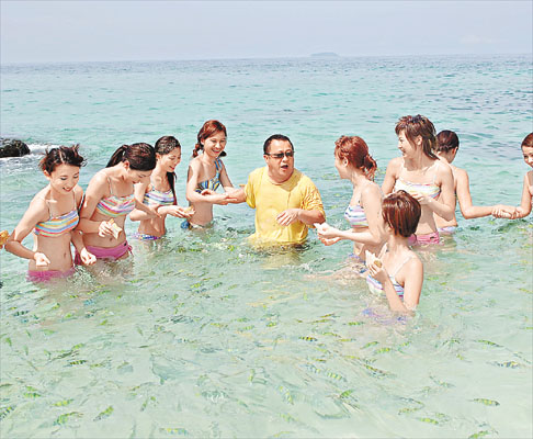 中新網(wǎng)6月27日電 據(jù)香港媒體報道,《2005年度香港小姐競選》20位佳麗前日與嘉賓曾志偉繼續(xù)在布吉拍攝外景,一班佳麗前日一早乘坐快艇前往水清沙幼的鳥蛋島進行拍攝。抵達后馬上換上三點式泳裝,在島上進行浮潛、沙灘排球,喂魚和擲飛標等拍攝,除了盡展美好身段外,同時亦展現(xiàn)港姐活力的一面。