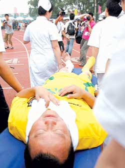 中新網(wǎng)6月28日電 據(jù)北京娛樂信報報道,昨天,有關(guān)曾志偉在參加奧運文化節(jié)友誼足球比賽時跟腱斷裂的消息一經(jīng)傳出,吸引起眾多人關(guān)注。為此,記者也撥通了曾志偉在內(nèi)地的手機(jī),他的朋友鄧小姐告訴記者,剛剛做完手術(shù)的他現(xiàn)在的狀況很好,只是走路不方便,今天他將拆線看恢復(fù)得如何。