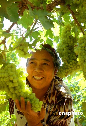 6月30日,吐魯番市亞爾鄉(xiāng)戈壁村葡農(nóng)依色拉提·吾秀爾在采摘成熟的葡萄。素有“葡萄王國(guó)”之稱的新疆吐魯番,自6月下旬以來,種植的50萬(wàn)畝無核白、紅葡萄、瑪奶子、翡翠綠、黑葡萄、玫瑰香、白布瑞克等500多個(gè)優(yōu)良品種的葡萄相繼成熟并上市。據(jù)了解,2003年吐魯番葡萄獲得國(guó)家原產(chǎn)地域產(chǎn)品保護(hù)。作者:劉健4509